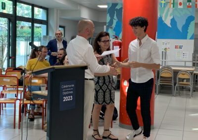 Ensuite, dans la joie et la bonne humeur la soirée a continué autour d’un buffet dans la cour du lycée: moment d’échange privilégié entre tous les acteurs de notre communauté – professeurs – élèves – parents